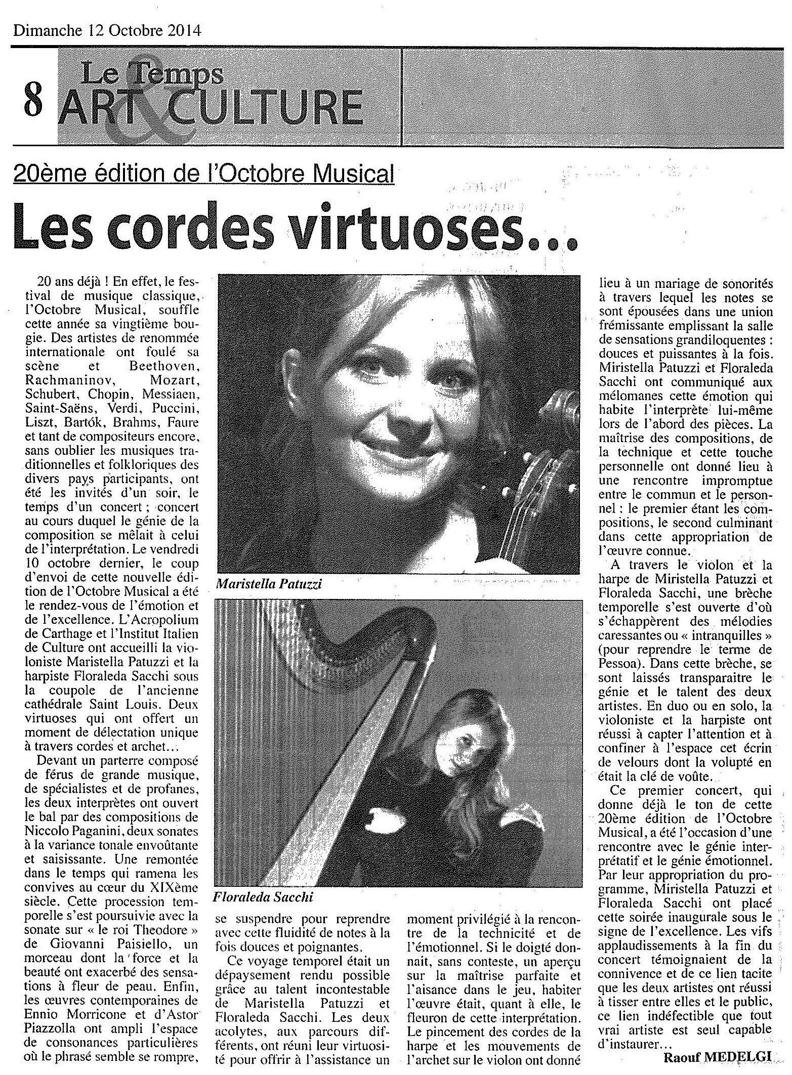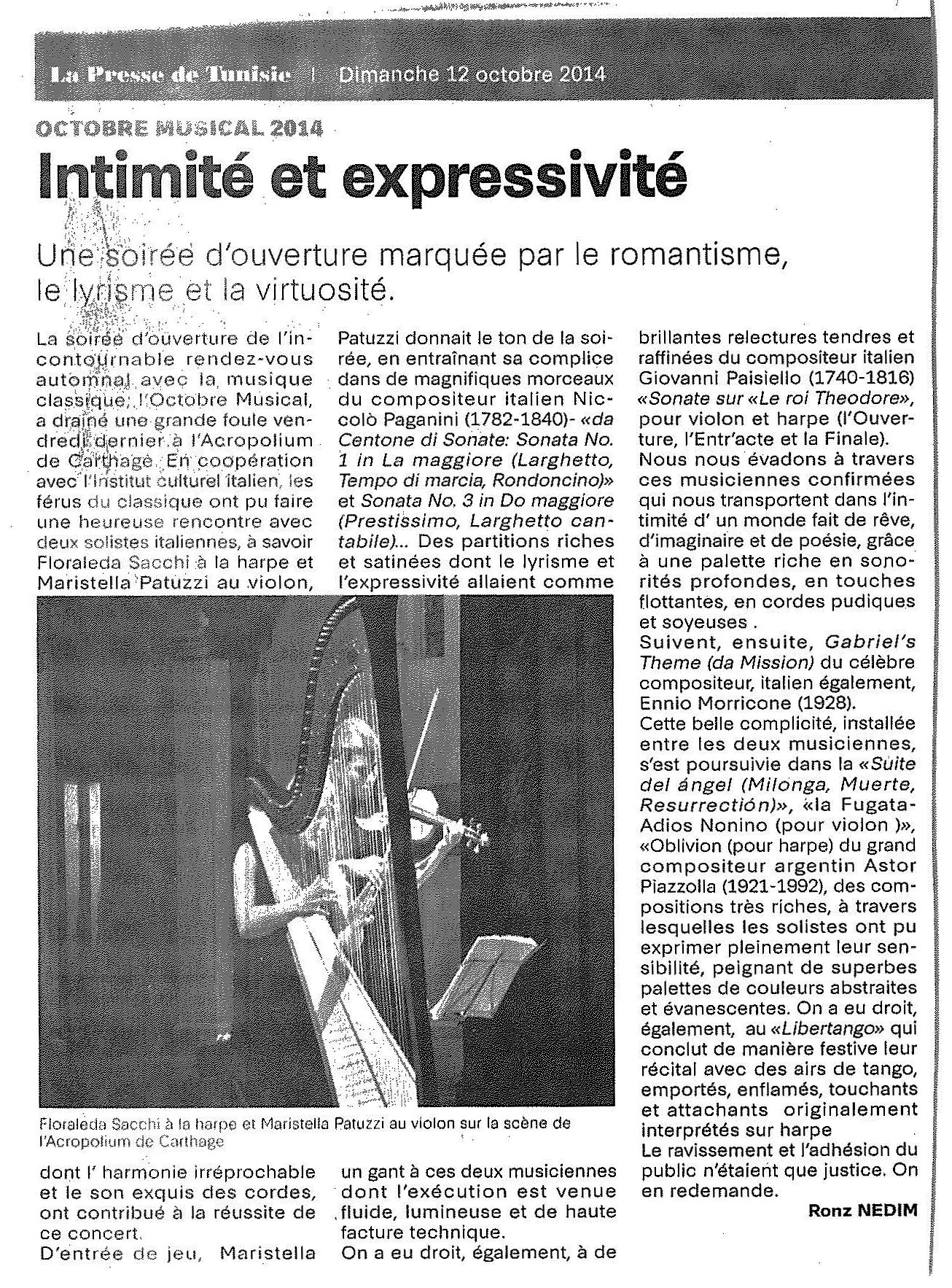 October 10. Octobre Musical de Carthage, Acropolium de Carthage, Tunisi. Music by Paganini, Paisiello, Morricone, Piazzolla Video, Review, Photo and more Info >>>