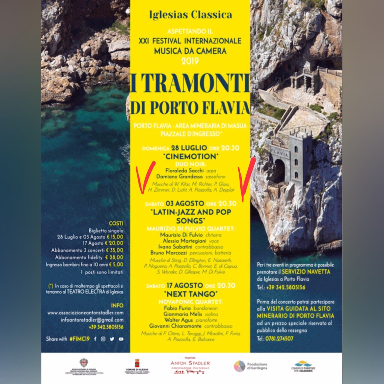 25/08 Duo Noir (Sax e arpa), Festival ArttAngo, Tonnara su Pranu, Portoscuso (Iglesias), 22:00