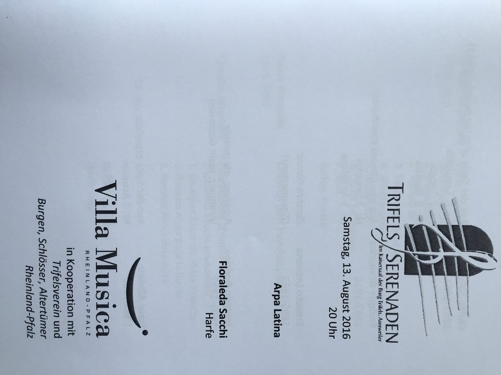 September 21. Mario Carbotta (Flute), Floraleda Sacchi (Harp). Music by: Rutter, Briccialdi, Verdi, Bizet/Borne. Villa Amalia, Erba (Como), 21.00