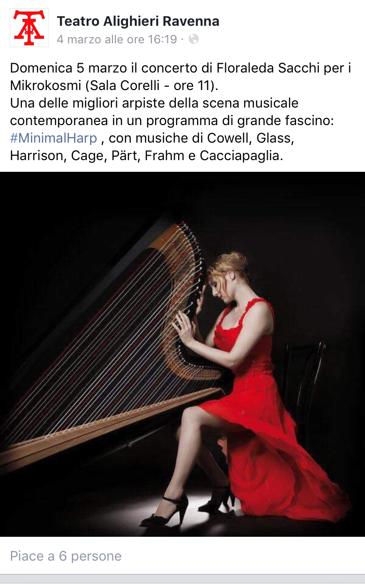 Il 12 febbraio a Imola all’interno del Bologna Harp festival e il 5 marzo a Ravenna al Teatro Alighieri.