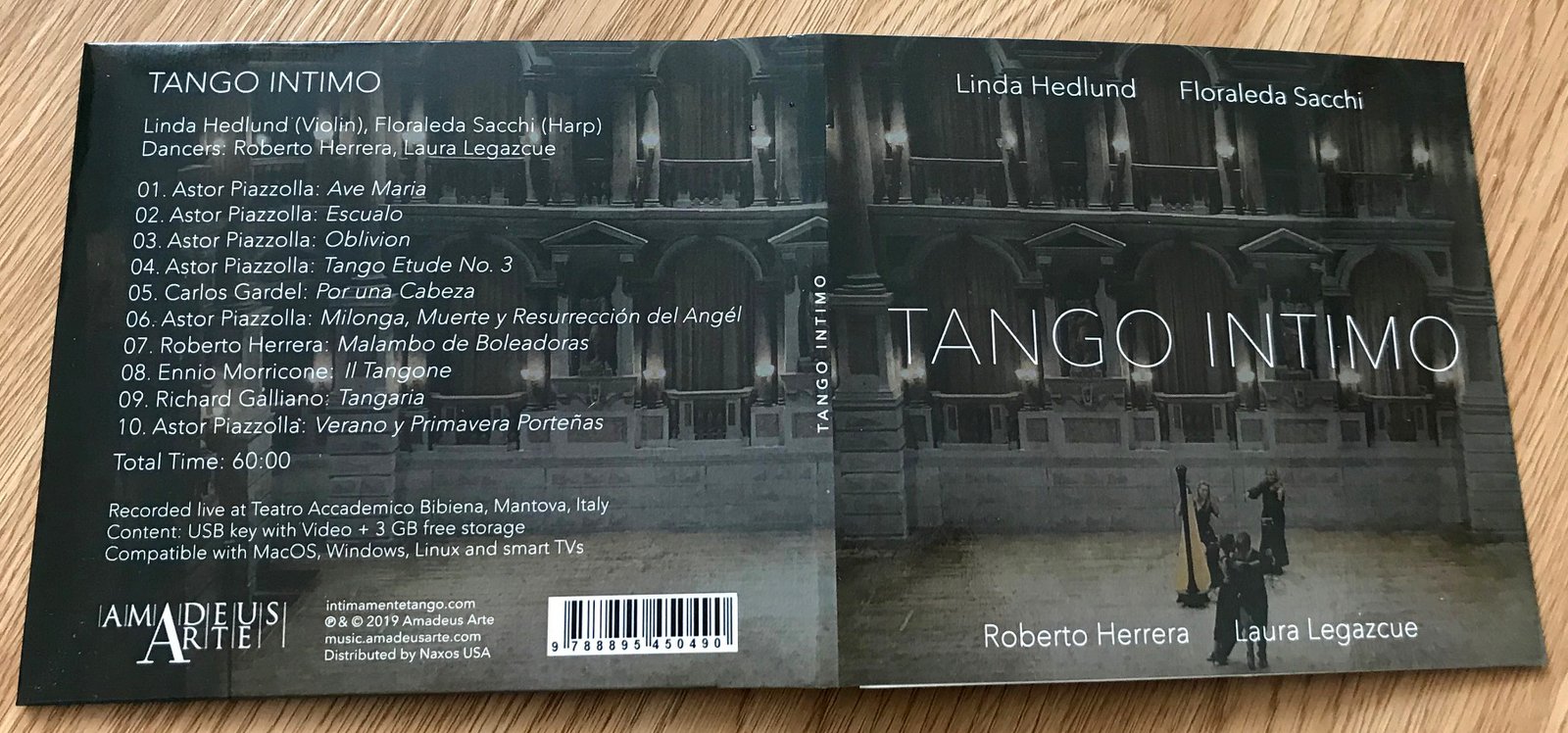 Recorded live in the wonderful Teatro Accademico Bibiena in Mantua – praised by Mozart as one of the best acoustics he experienced – TANGO INTIMO is performed by Finnish Violinist Linda Hedlund and Italian Harpist Floraleda Sacchi.