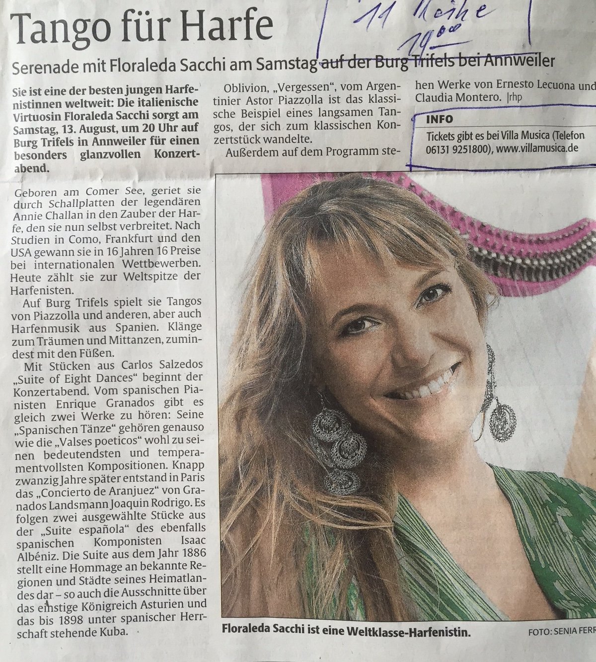 She got an outstanding review for her “Arpa Latina” Recital:
